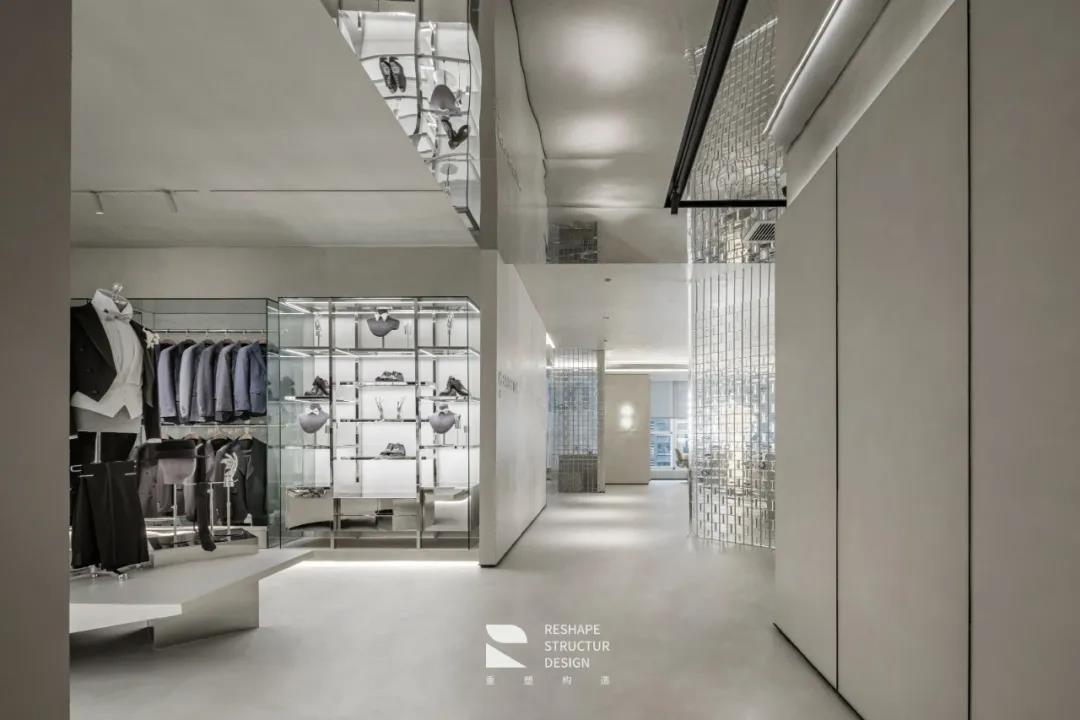 设计师将材料发挥到了极致,尝试实现艺术感和商业化这两个极端元素的和谐共存。在极简主义的主导氛围之下,寻求更多的现代情致,设计师利用玻璃墙装置与微水泥的变化,呈现出精致、简练的现代美学,使这个小空间与整体设计和谐统一,而且充满了年轻活力,特别符合年轻客户群体的功能需求和审美品味。